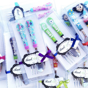 Aksesoari za decu: kape i ukrasi za kosu, dečiji broševi, bedževi, ogrlice i privesci, personalizovani pribori za jelo, dečiji rančevi, torbice i cegeri.