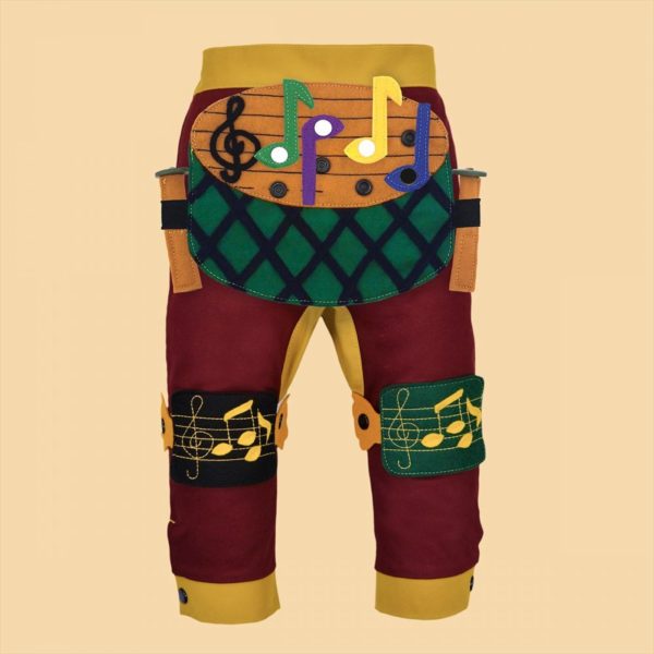 Mekane keper pamuk pantalone dodacima za kolena i prednje aplikacije u obliku instrumenata 🎼🎸🎹🥁 izrađene od merino vune! Za jedinstveno senzorno i fino-motoričko 👌🏽👌🏿👌 iskustvo najmlađih 👫👬👭 kao osnova kognitivnog razvoja!